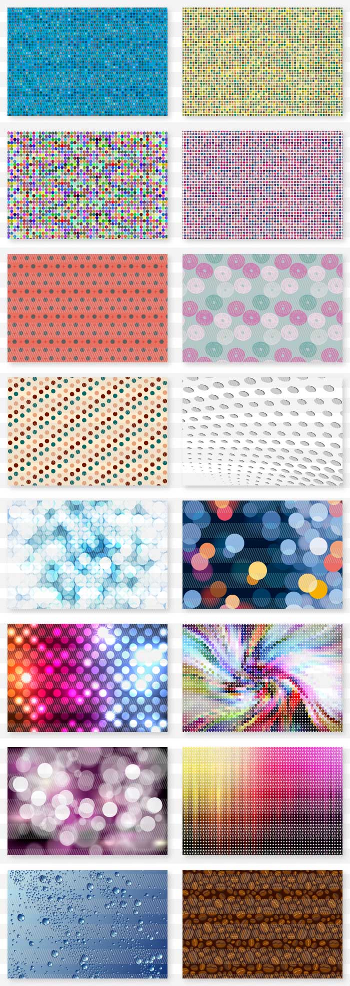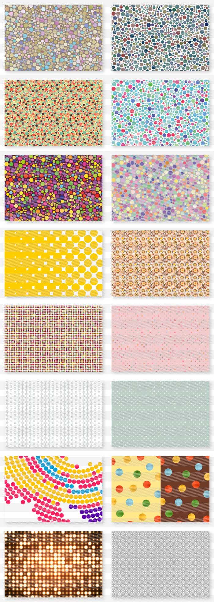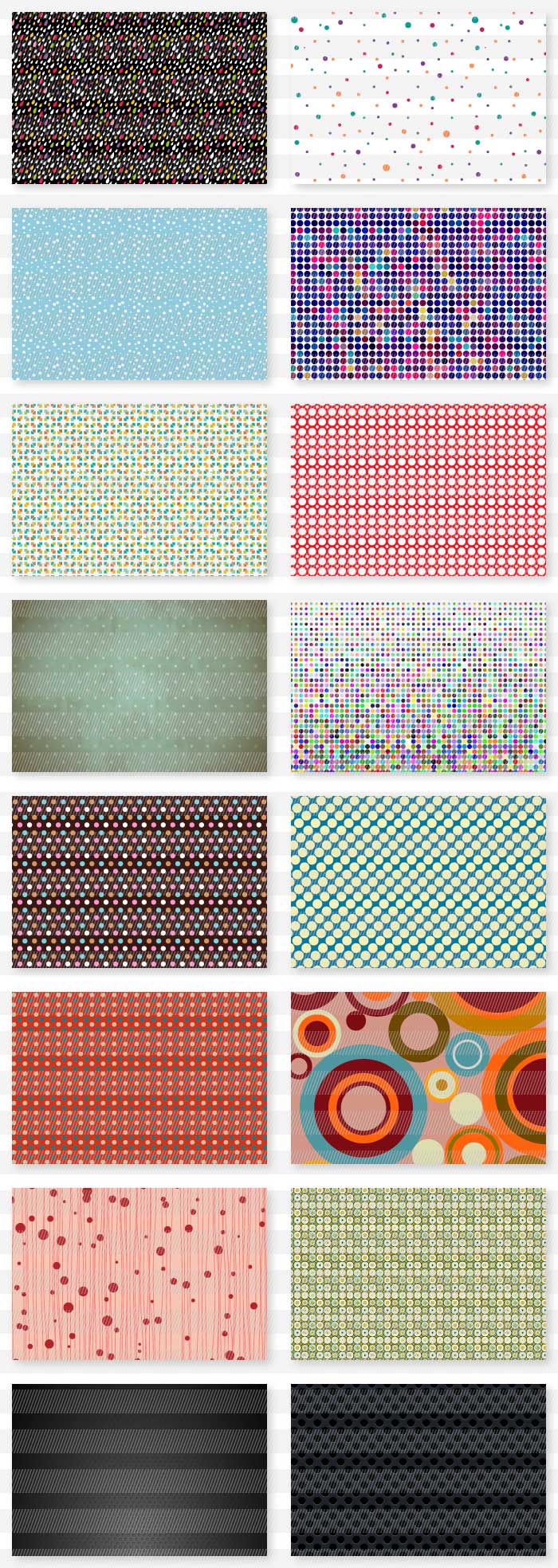 ドット模様や水玉模様を基調とした背景や、タイル調に敷き詰められたモンドリアン柄風のイメージのお洒落な背景素材集です。
